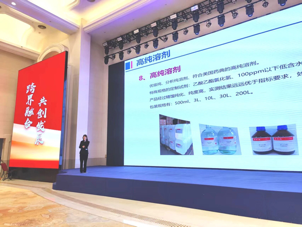 在本次論壇設置的路演環節,杜總系統介紹了康科德的發展歷程、技術優勢與產品體系、質控體系以及產品在各領域應用案例;闡述了公司在高純試劑領域的持續創新與布局,展現了康科德助力行業實現“國產化替代”與“技術升級”的綜合實力。